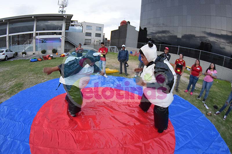 Ponte el traje y pelea con un amigo como un luchador profesional de sumo. Gana el último que quede dentro del ring.